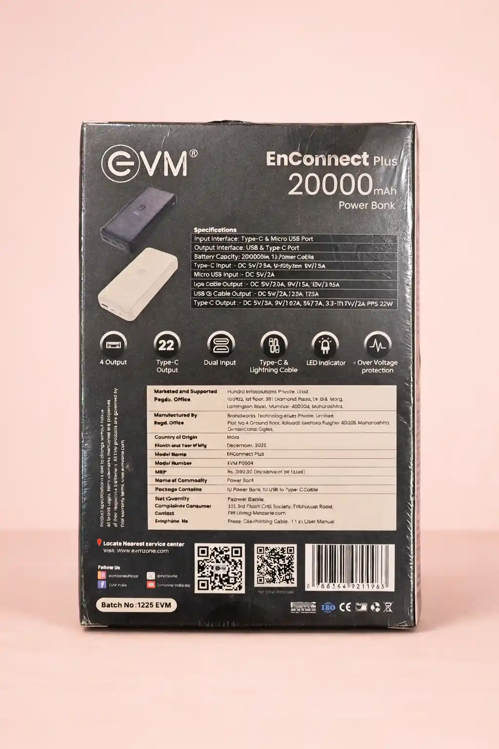 EnConnect Plus 20000mAh is a high-capacity portable power bank designed for fast, reliable charging of smartphones, tablets, and other USB-powered devices.